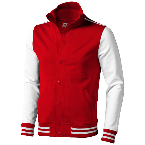 | Giacca Varsity. Tipping a contrasto su colletto e maniche.Tasca laterale.Toppa Slazenger sulla manica.Bottone a pressione Slazenger sulla chiusura frontale.Colletto piatto.Polsini a costine.Orlo inferiore a costine.Etichetta principale stampata in transfer per maggior comfort. Tessuto French Terry di cotone 100%. 420 g/m?. |