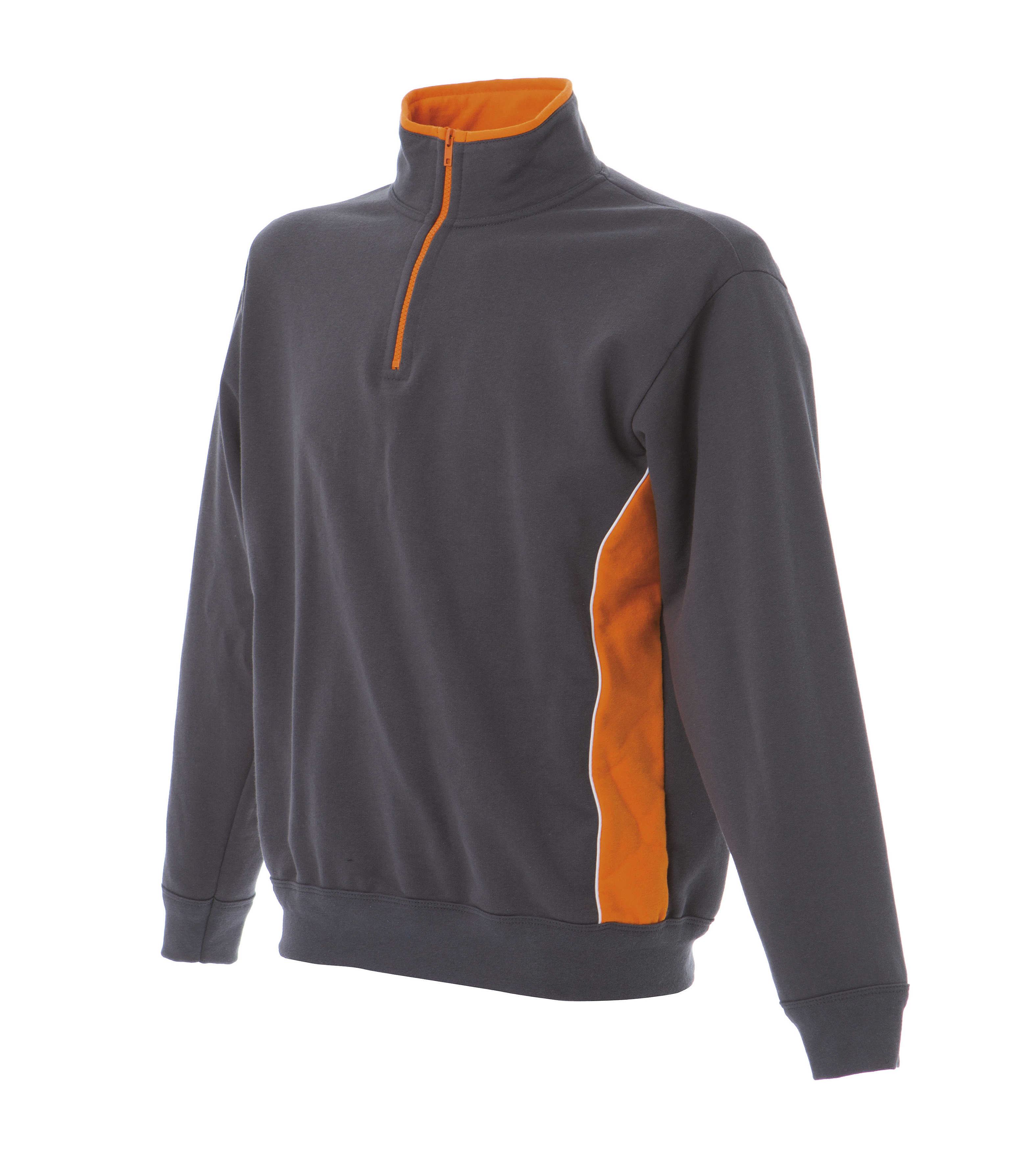 | Felpa bicolore made in Italy - Composizione: 80% cotone - 20% poliestere - Collo a lupetto - Zip corta in contrasto - Fianchi e interno collo in contrasto - Piping laterali in contrasto - Polsini e fondo maglia in costina h cm 7 - Cuciture ribattute |