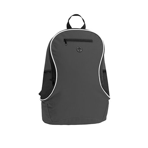 | zaino nylon 600D tasche laterali in materiale traforato tasca esterna con zip taschino interno per auricolari foro esterno passacavi spallacci imbottiti regolabili tiralampo in tessuto tecnica di stampa consigliata: serigrafica - transfer |